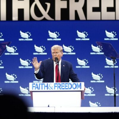 Donald Trump endorses displaying the Ten Commandments in schools as he urges evangelical Christians to vote