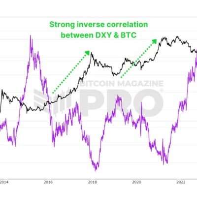 Bitcoin and the U.S. dollar have a long-standing inverse correlation, notably when observing the Dollar Strength Index (DXY). When the