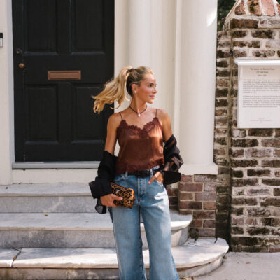 Frame Shirt, Cami NYC Tank (similar here), Frame Jeans, Toteme Heels & Clutch, Arielle Ratner Necklace & Earrings Autumn neutrals take on new life this season, shifting from expected basics