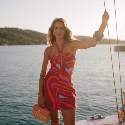 Maison Marigold Dress, Loewe Sunglasses This season’s coastal moodboard comes alive with color and texture, from sun-baked corals and tidepool greens
