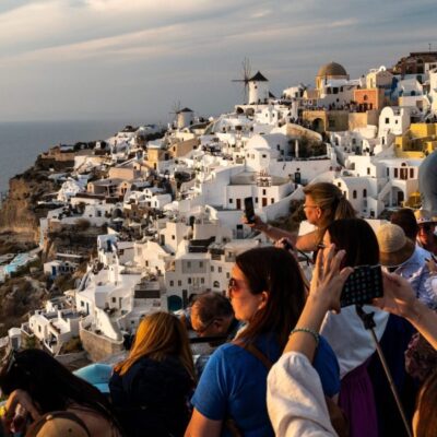 Santorini’s whitewashed streets will heave with millions of visitors this summer. Not everyone on the Greek island will be happy