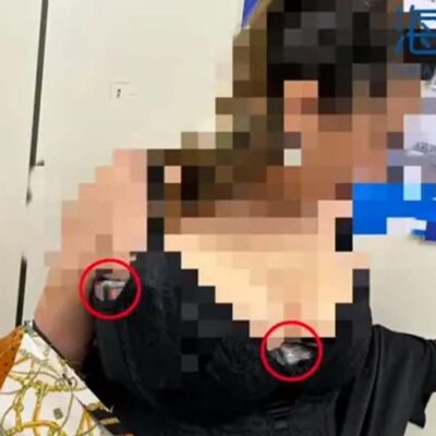 Screenshot: Hong Kong 01 / Kotaku A nervous woman with a large bust size was stopped at an airport in