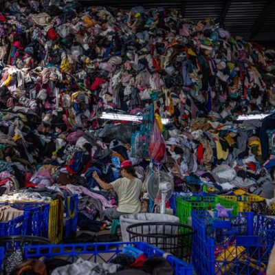 Piles of discarded clothes wait to be sorted at a textile-recycling factory in Taiwan.Credit: Annabelle Chih/Getty Researchers have developed a