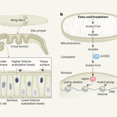 Nature, Published online: 05 June 2024; doi:10.1038/d41586-024-01503-9 Using tissue from the developing fruit-fly wing, researchers show that a nucleus’s location