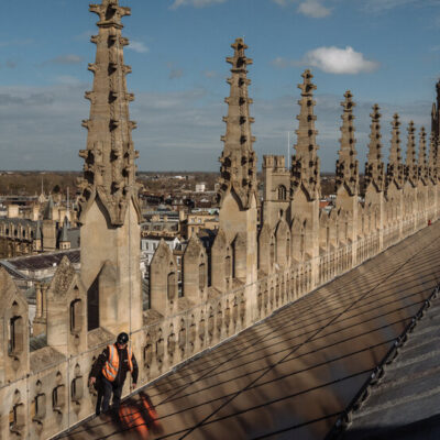 Clambering across the sloped roof of King’s College Chapel with the agility of an undergraduate, Toby Lucas, 56, pointed to