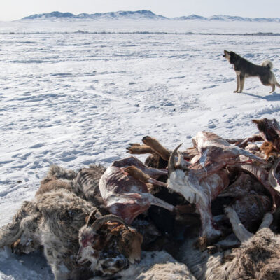 An unusually brutal winter in Mongolia has left much of the country’s grazing land frozen and snow-covered, starving or freezing