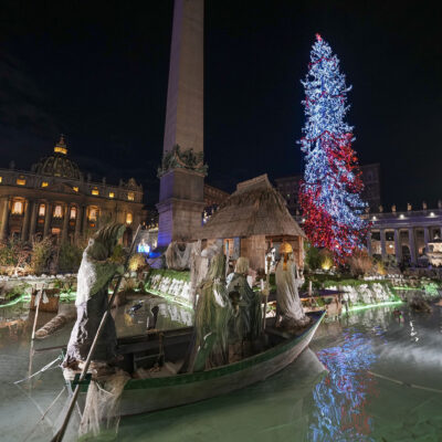 At Vatican Christmas tree lighting, Pope Francis calls attention to sustainability